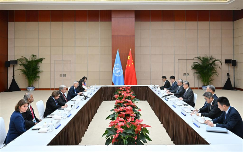 Le ministre chinois des Affaires étrangères, Wang Yi, a rencontré samedi le secrétaire général des Nations Unies (ONU), Antonio Guterres, dans la ville portuaire de Tianjin, dans le nord de la Chine.