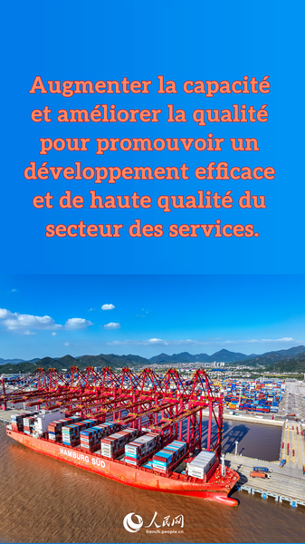 Mettre en œuvre des actions visant à accroître la capacité et à améliorer la qualité du secteur des services, à améliorer le niveau de développement intégré du secteur des services modernes, de la fabrication de pointe et de l'agriculture moderne, et à ouvrir un nouvel espace pour la croissance économique tout en répondant mieux aux besoins de la population pour une vie meilleure.